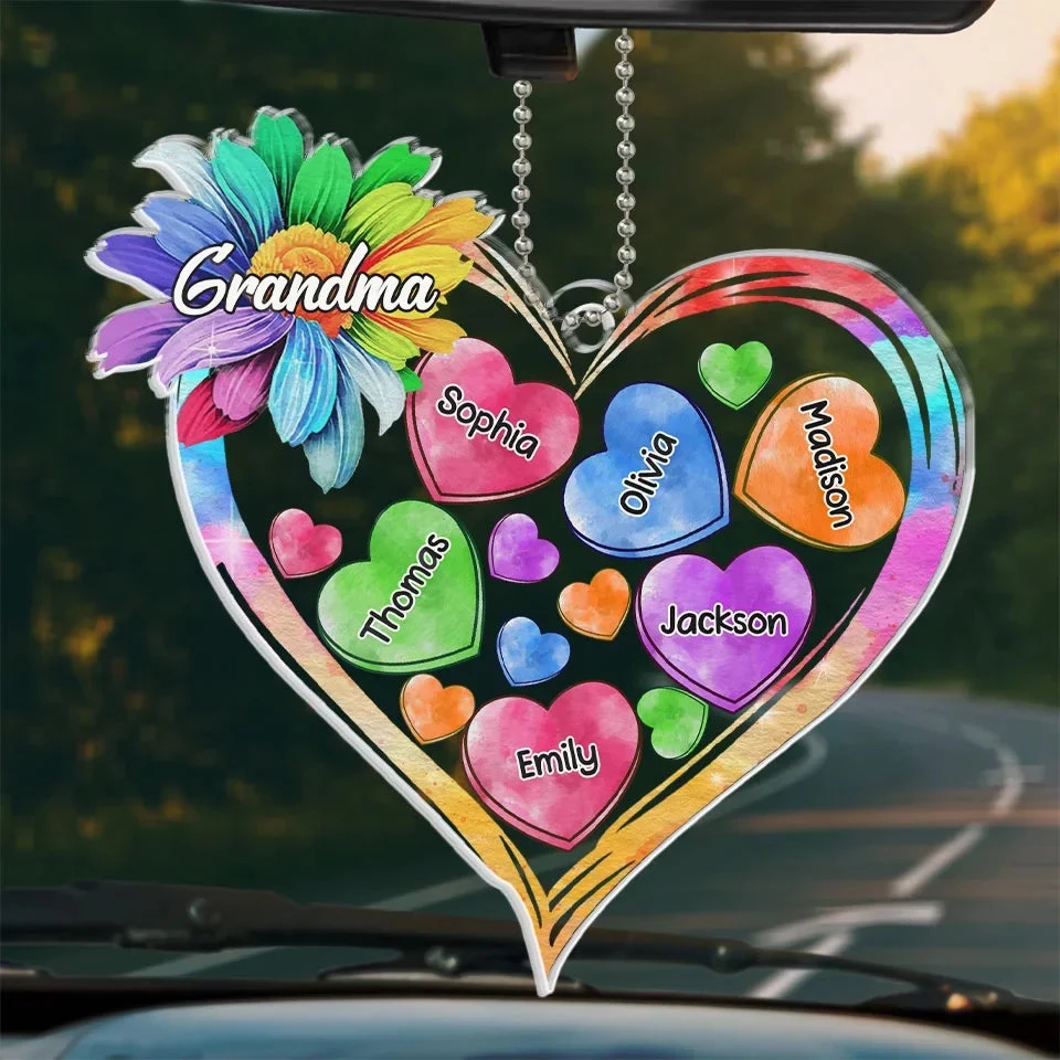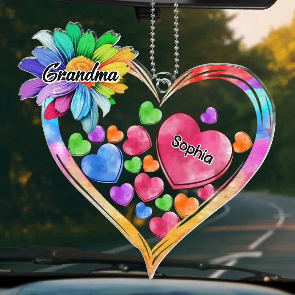 A Grandma’s Heart Is Where The Most Beautiful Flowers Grow – Family Personalized Custom Car Ornament – Acrylic Custom Shaped – Gift For Mom, Grandma