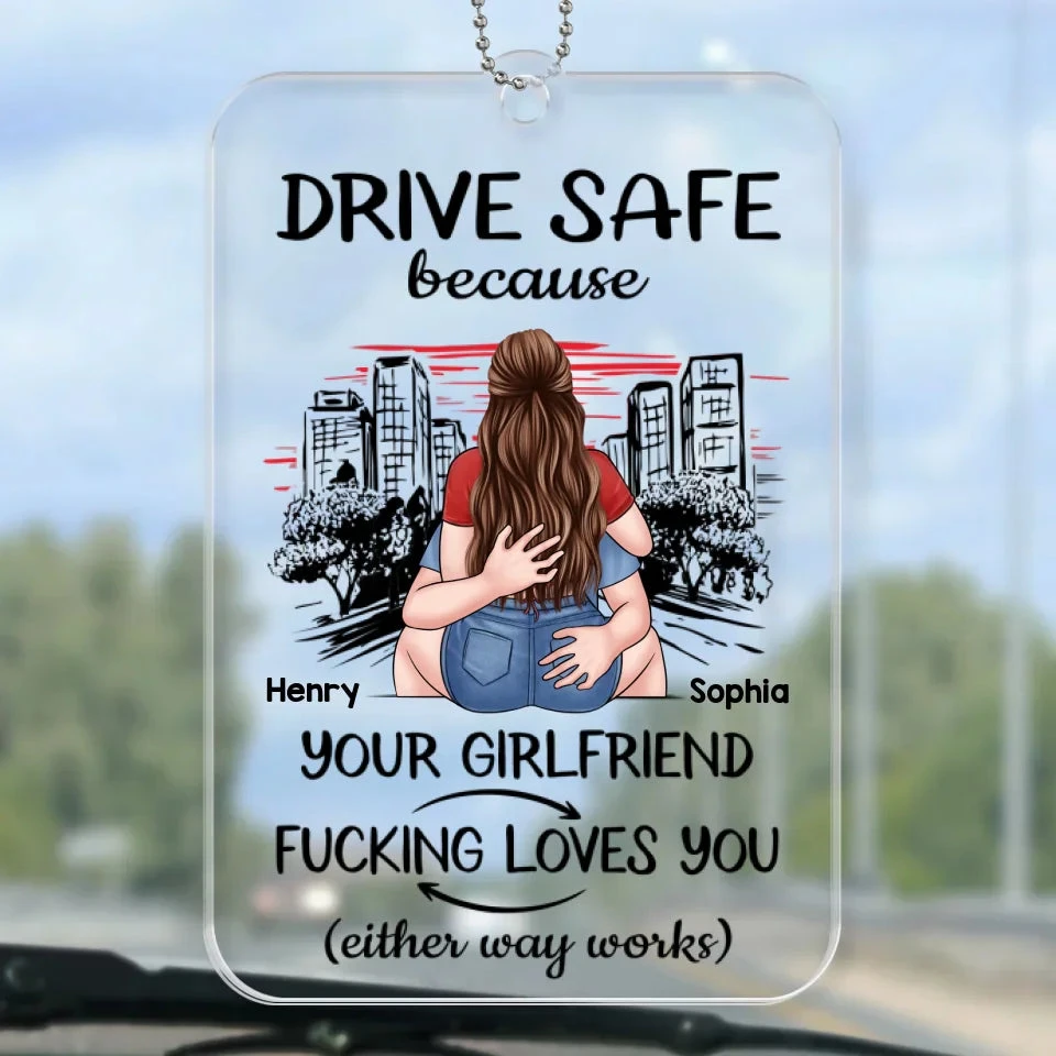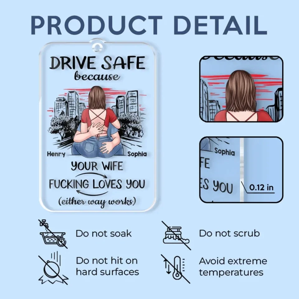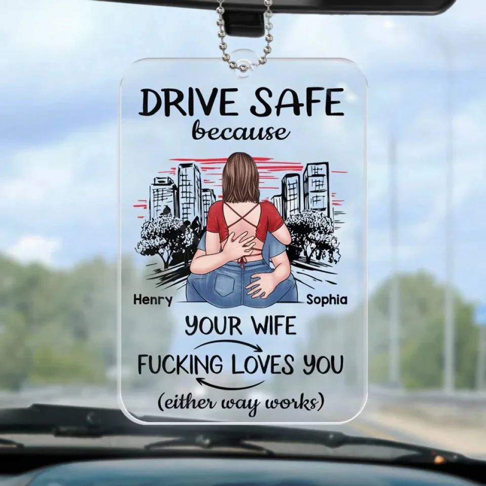 Be Careful On Your Journey – Couple Personalized Custom Car Ornament – Acrylic Custom Shaped – Gift For Husband Wife, Anniversary