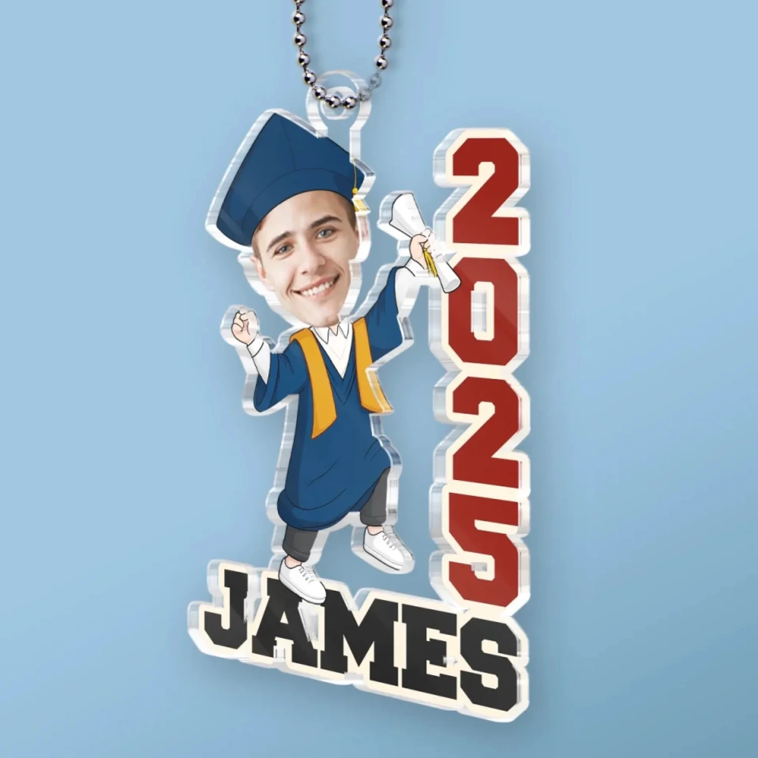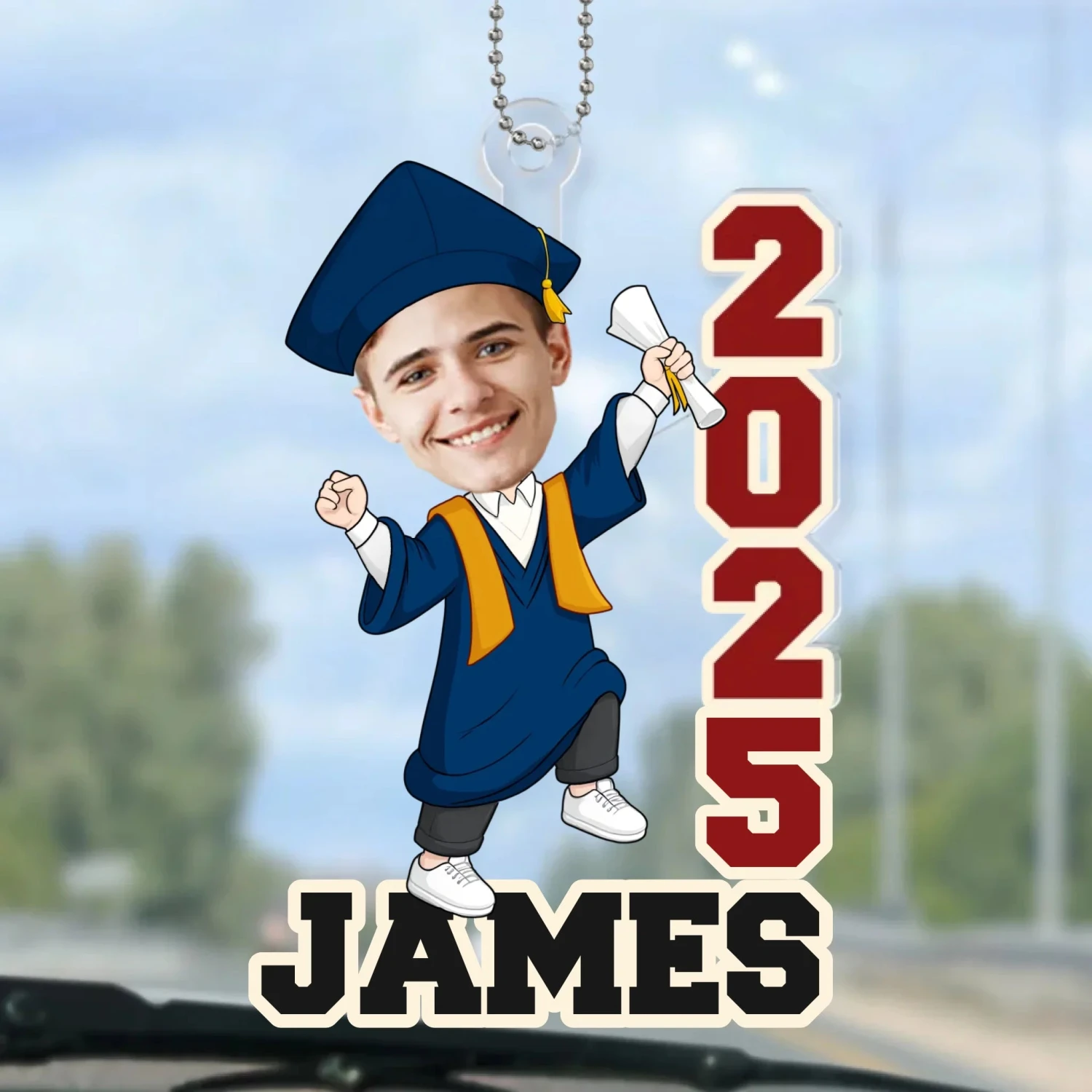 Custom Photo Cheers To The Tassel Hustle – Family Personalized Custom Car Ornament – Acrylic Custom Shaped – Graduation Gift For Family Members, Siblings, Brothers, Sisters