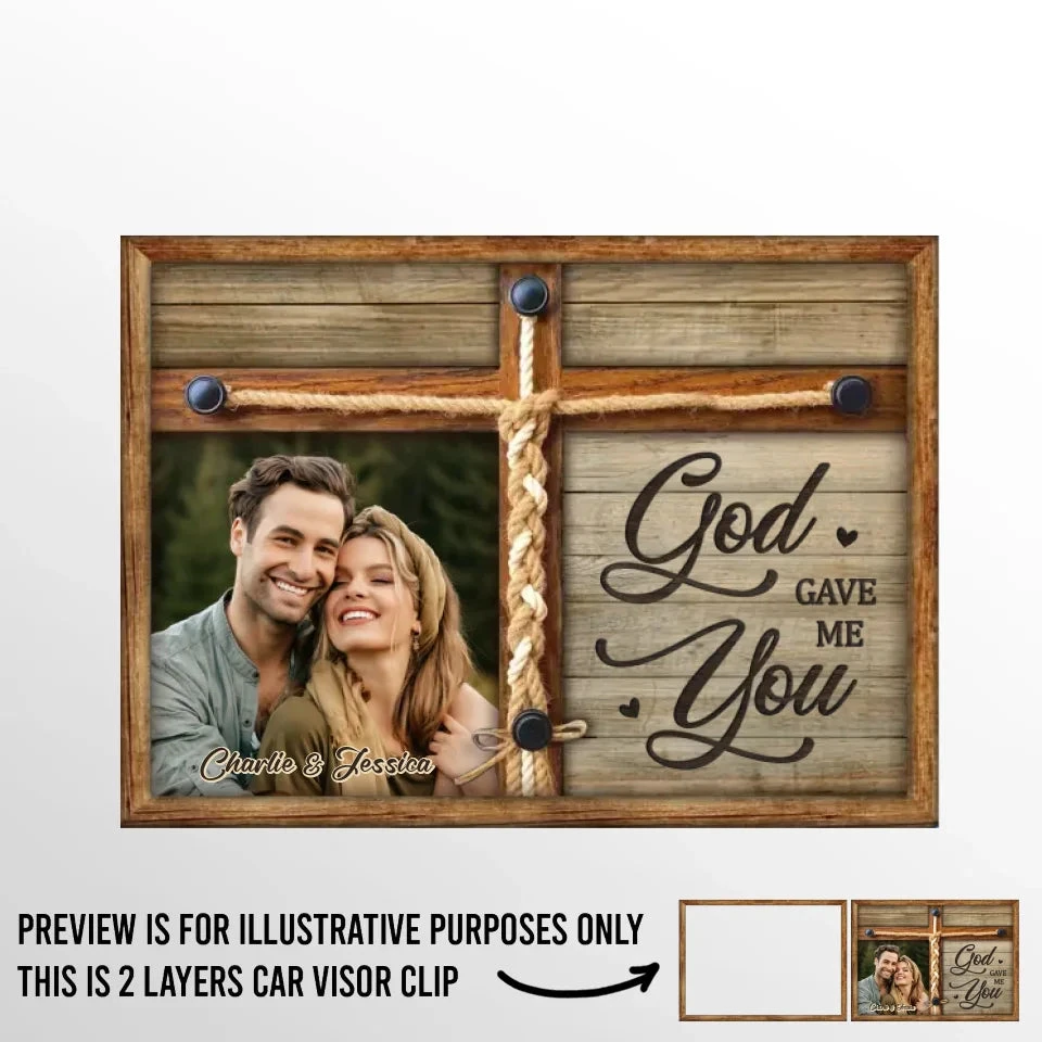 Custom Photo God Blessed Us With Each Other – Couple Personalized Custom Car Visor Clip – Gift For Husband Wife, Anniversary
