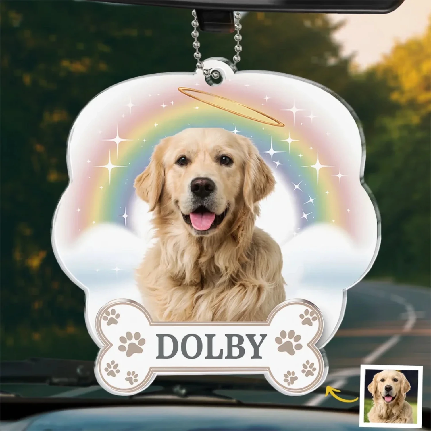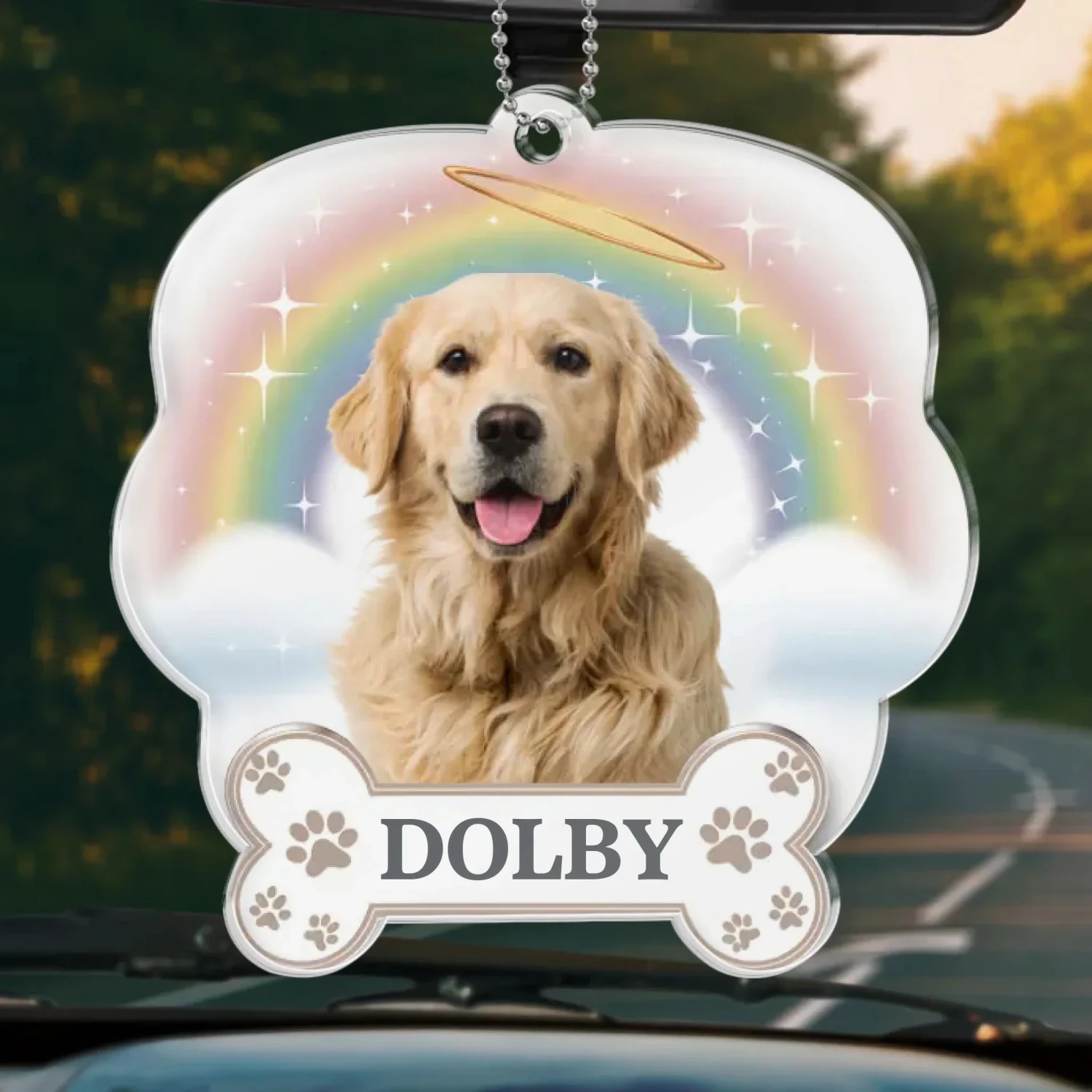 Custom Photo In Our Hearts, You’ll Always Stay – Memorial Personalized Custom Car Ornament – Acrylic Custom Shaped – Sympathy Gift For Pet Owners, Pet Lovers