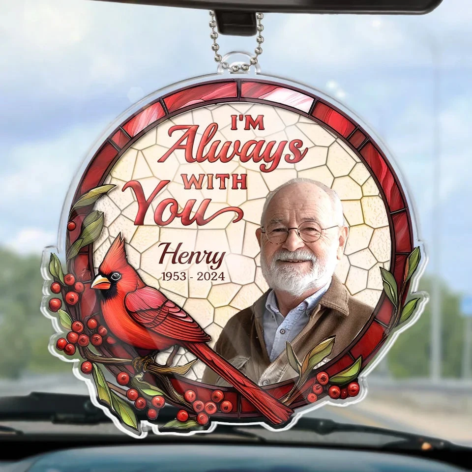 Custom Photo Loving You Forever – Memorial Personalized Custom Car Ornament – Acrylic Custom Shaped – Sympathy Gift For Family Members