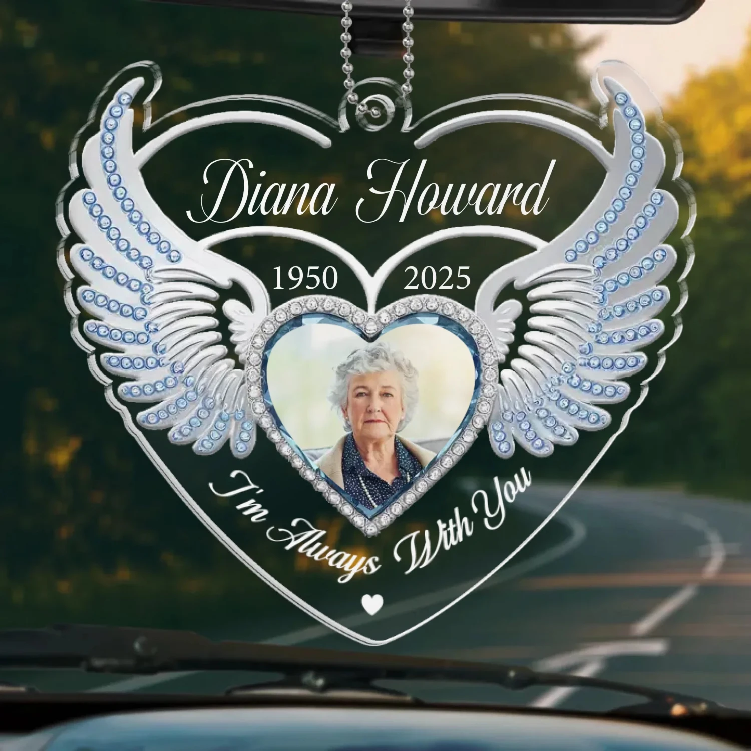 Custom Photo One Day With You, Forever With You – Memorial Personalized Custom Car Ornament – Acrylic Custom Shaped – Sympathy Gift For Family Members
