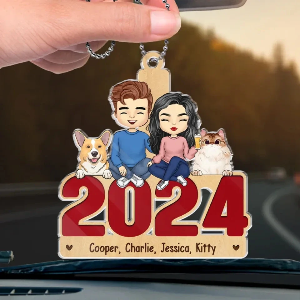 Dogs Have Owners, Cats Have Staff – Dog & Cat Personalized Custom Car Ornament – Acrylic Custom Shaped – Gift For Pet Owners, Pet Lovers