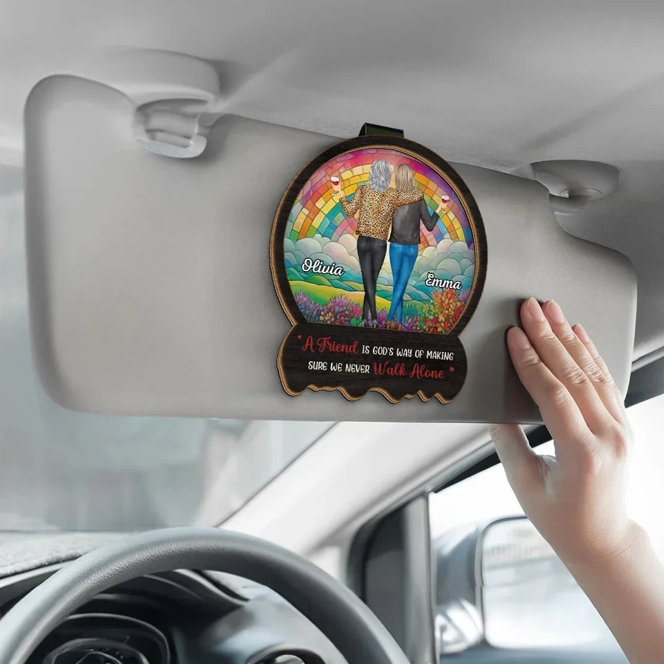 Friends Make Life Brighter And Hearts Lighter – Bestie Personalized Custom Car Visor Clip – Gift For Best Friends, BFF, Sisters
