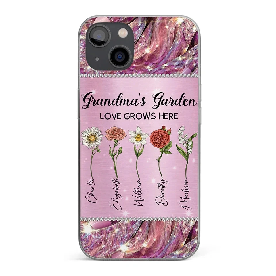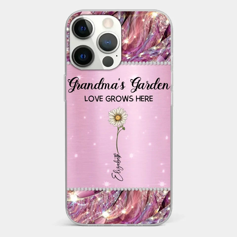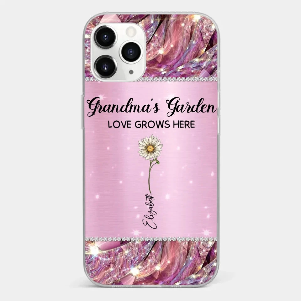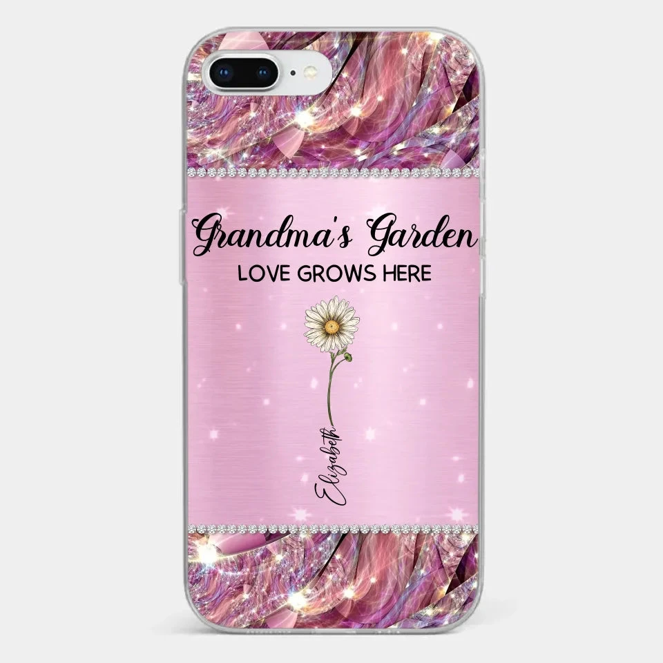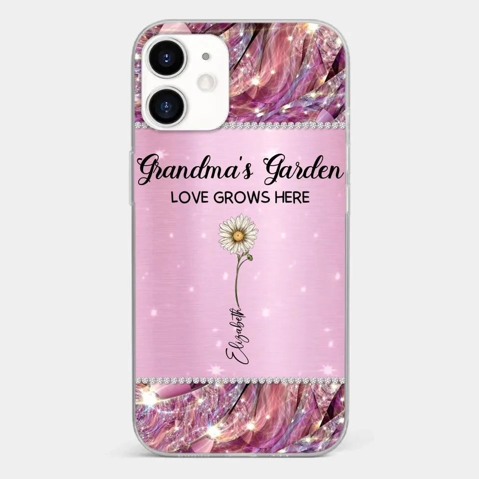 Grandma’s Love Doesn’t Grow Old, It Grows Deeper – Family Personalized Custom Faux Jewelry Effect Printed Clear Phone Case – Gift For Mom, Grandma