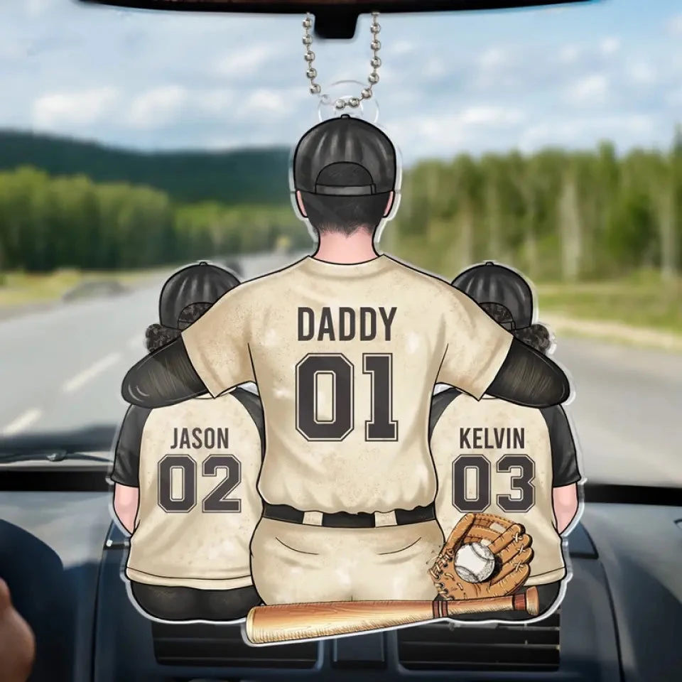 Hand In Hand, I Will Always Protect You – Family Personalized Custom Car Ornament – Acrylic Custom Shaped – Gift For Dad, Sport Lovers, Sport Players
