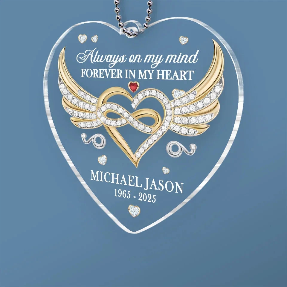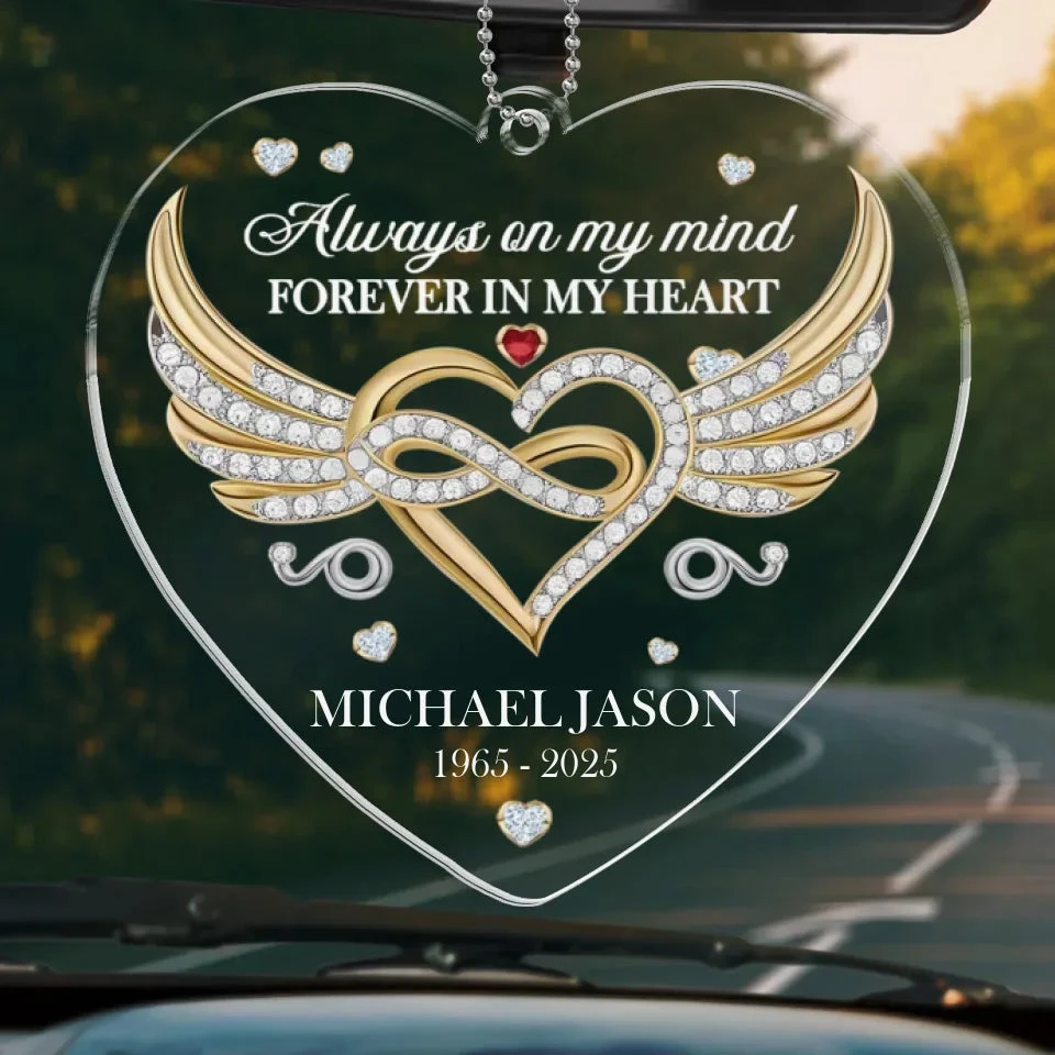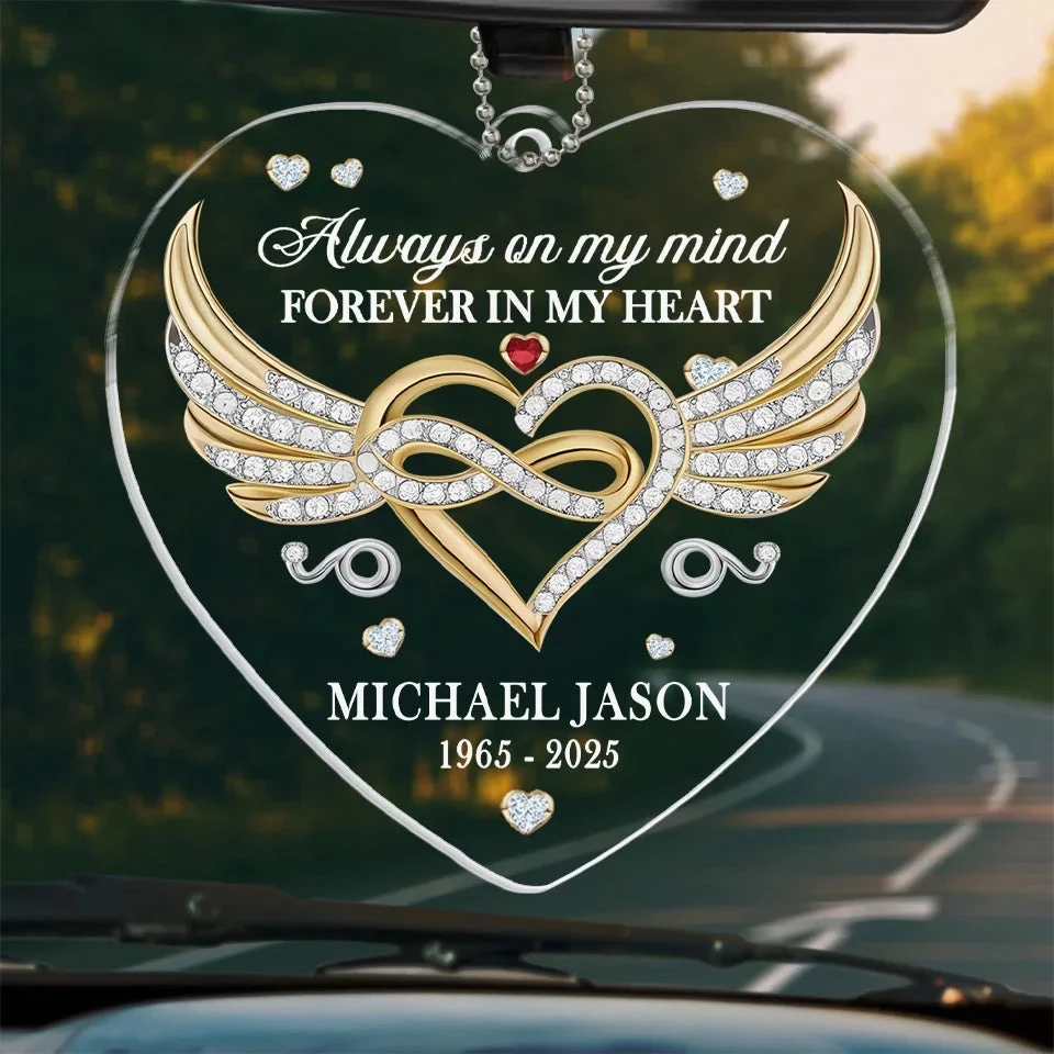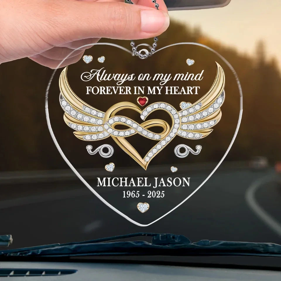 In Our Memories, You Live On – Memorial Personalized Custom Car Ornament – Acrylic Custom Shaped – Sympathy Gift For Family Members