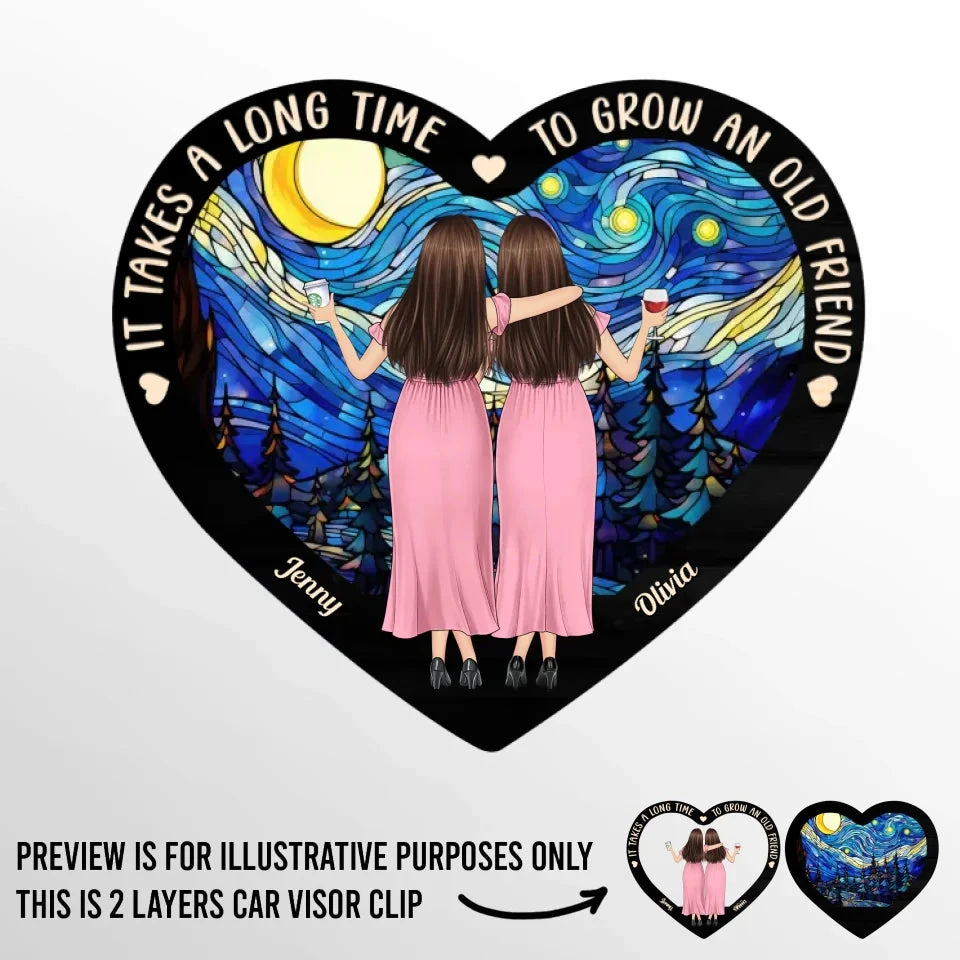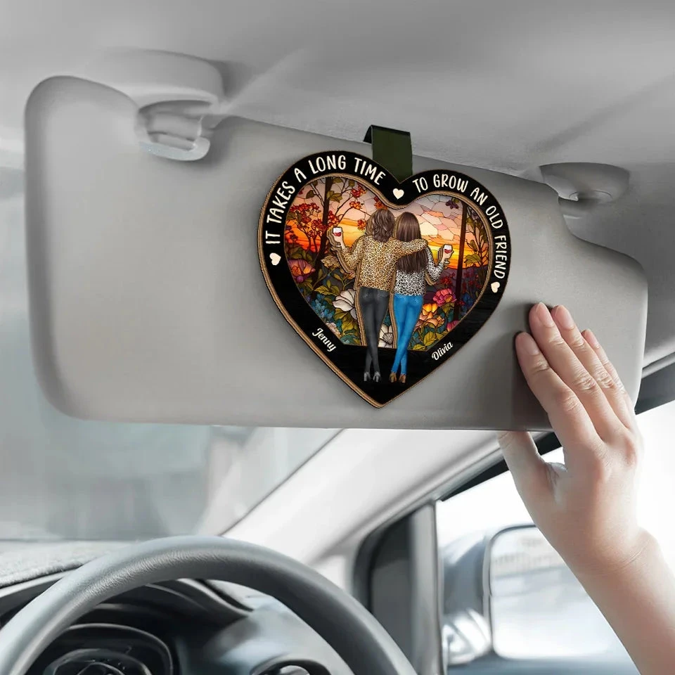 It Takes A Long Time To Grow An Old Friend – Bestie Personalized Custom Car Visor Clip – Gift For Best Friends, BFF, Sisters