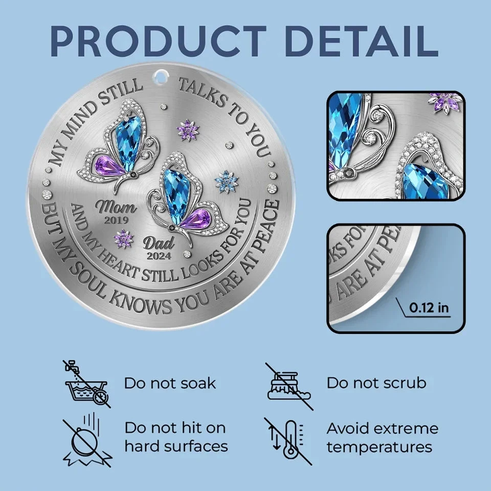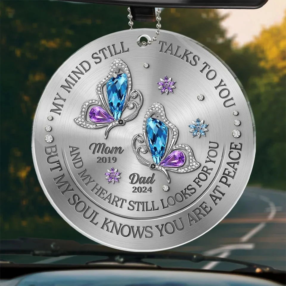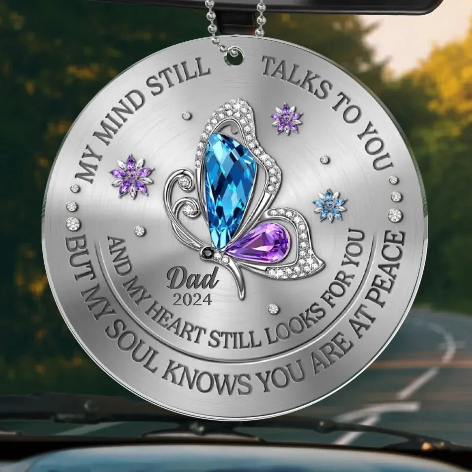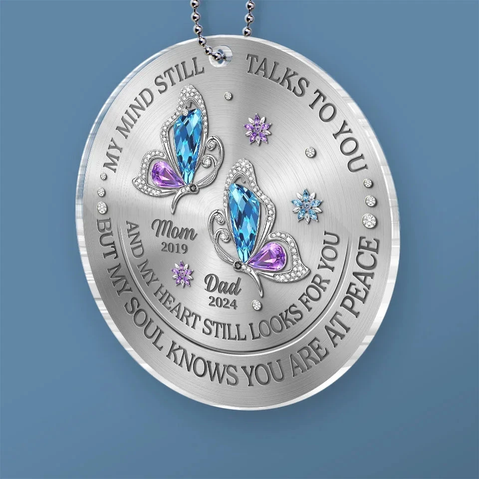 My Mind Still Talks To You But My Soul Knows You Are At Peace – Memorial Personalized Custom Car Ornament – Acrylic Custom Shaped – Sympathy Gift For Family Members