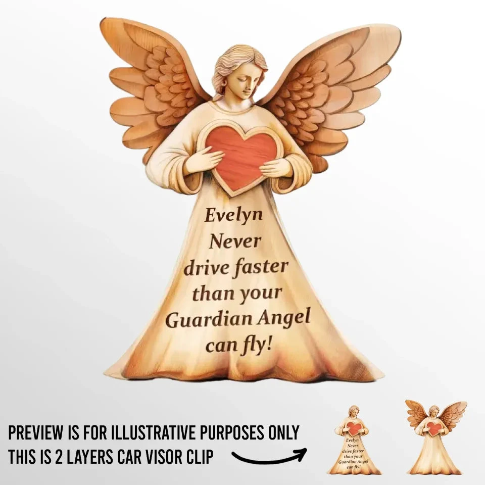 Never Drive Faster Than Your Guardian Angel Can Fly – Family Personalized Custom Car Visor Clip – Gift For Daughter, Son