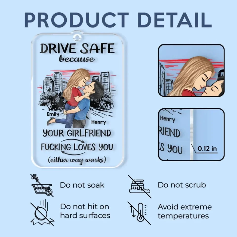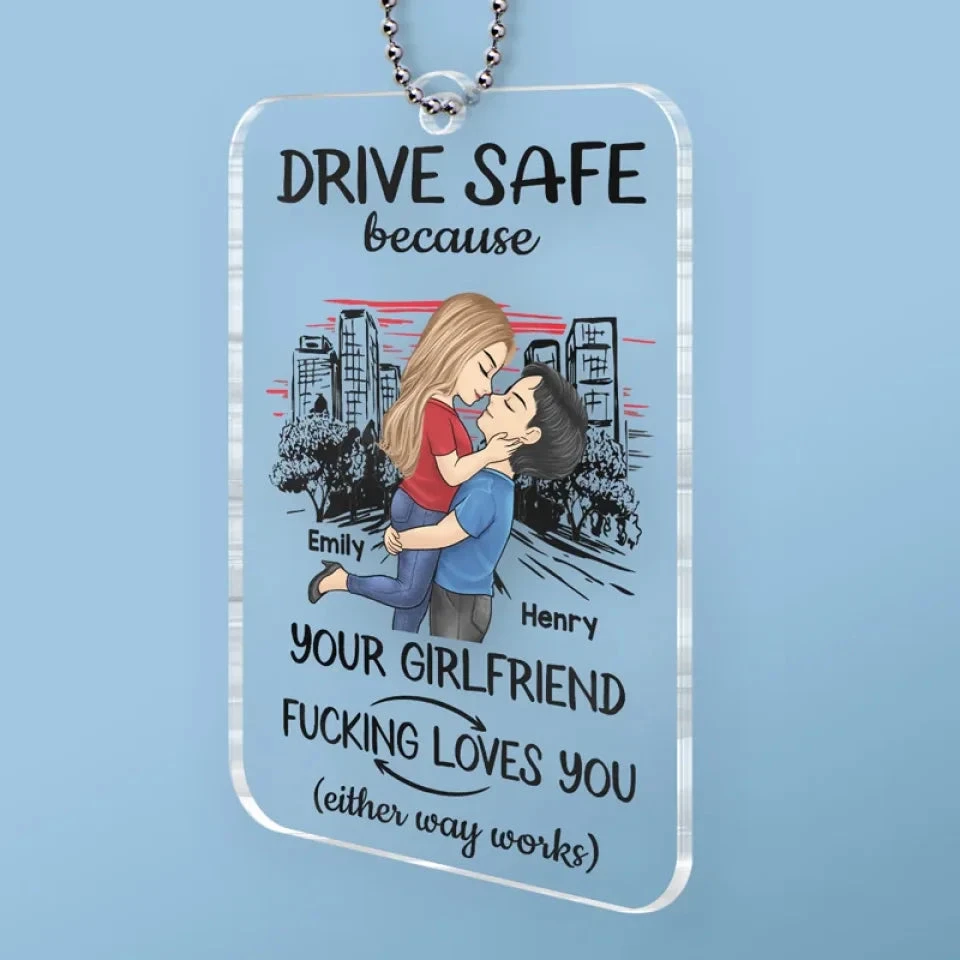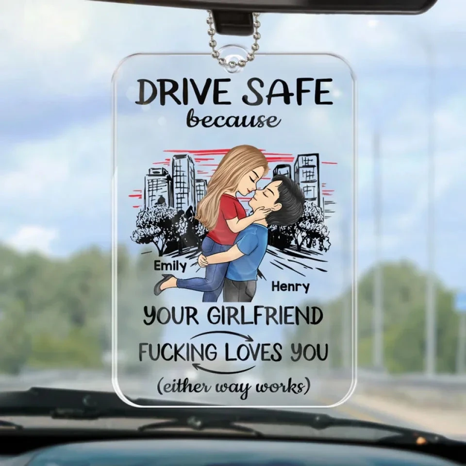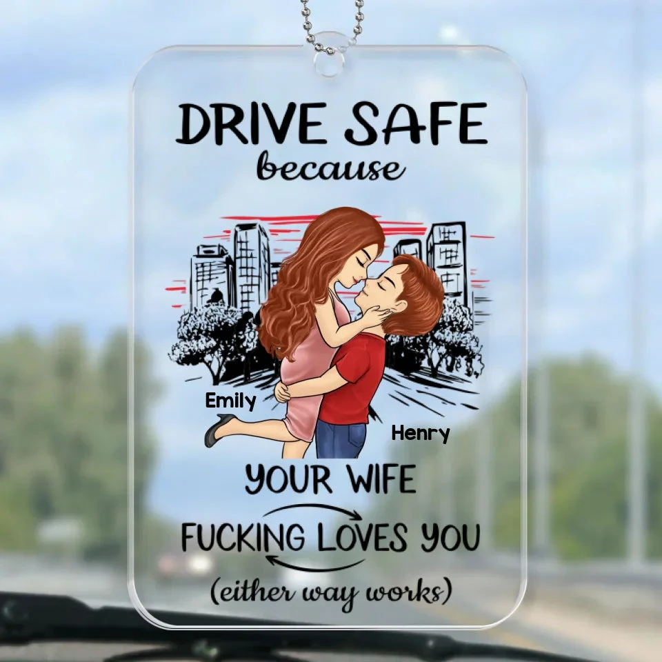 Take Care On The Road, You Mean The World To Me – Couple Personalized Custom Car Ornament – Acrylic Custom Shaped – Gift For Husband Wife, Anniversary