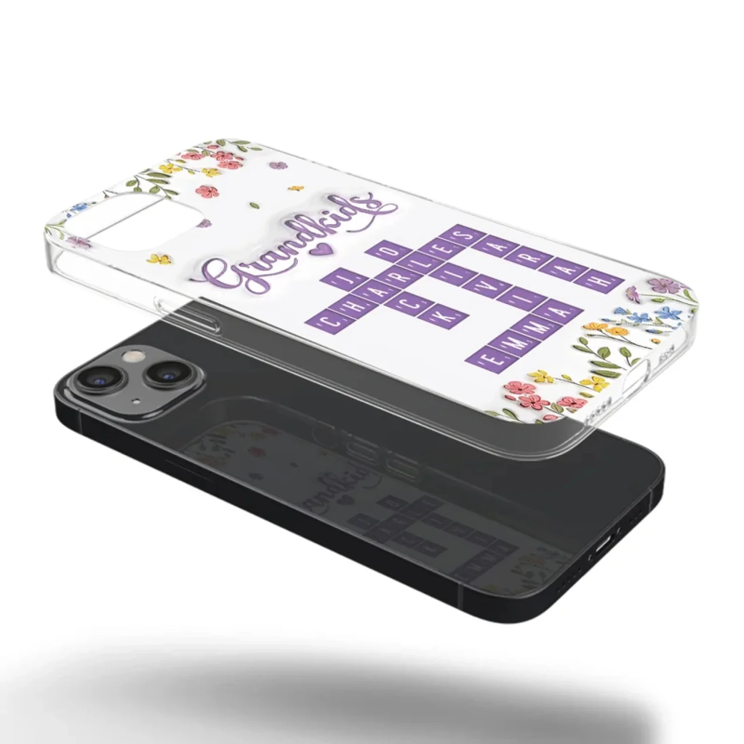 This is a clear phone case with a 3D inflated effect print, used to give the item a premium and deep look.