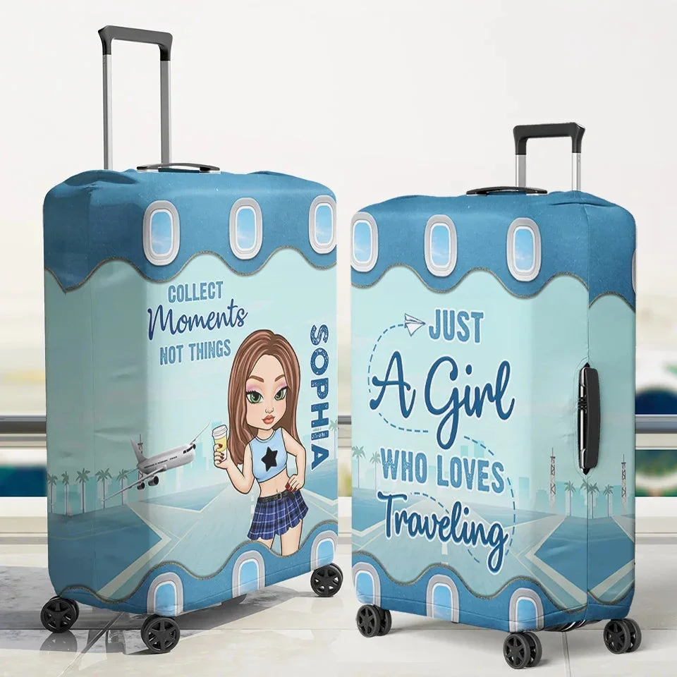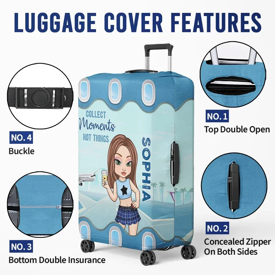 Travel Far, Live Fully – Travel Personalized Custom Luggage Cover – Summer Vacation Gift, Gift For Adventure Travel Lovers