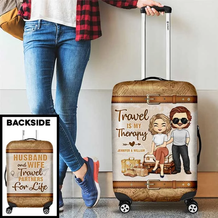 Message: “Travel is my therapy – Husband & Wife, travel partners for life”.